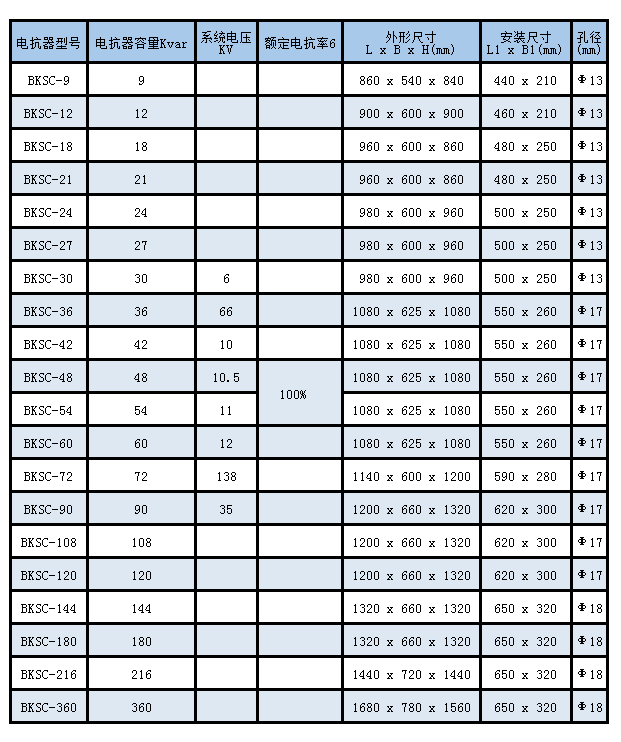 1.该电抗器分为三相和单相两种,均为铁心干式;
