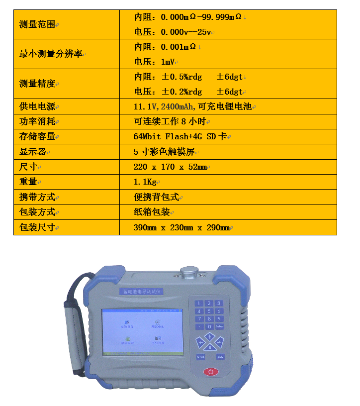 蓄电池内阻测试仪是快速准确测量电池运行状态参数的数字存储式多功能便携式测试仪器。该仪表通过在线测试,能显示并记录多组电池电压、内阻、连接条电阻等电池重要参数,精确有效地判别电池优良状况,并可与计算机及专用电池数据分析软件一起构成智能测试设备,进一步跟踪电池的衰变趋势,并提前报警,以利于工程技术及管理人员酌情处理.